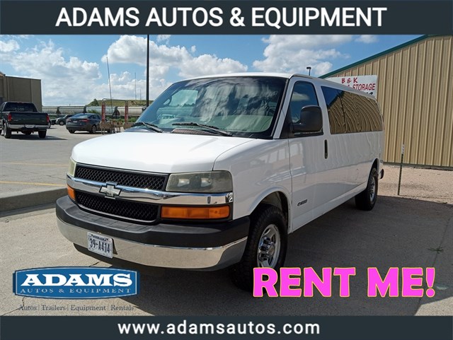 This Chevrolet Express van rents for $105.00 a day. This price includes 250 miles per day. Extra miles are 10 cents per mile. Renter does need to carry full coverage insurance. Price does not include tax. Please call 308-221-1690 for further information.