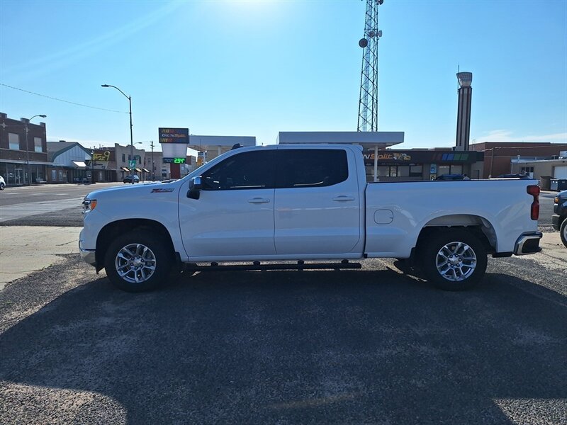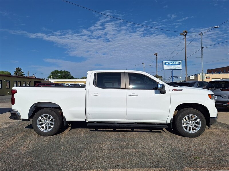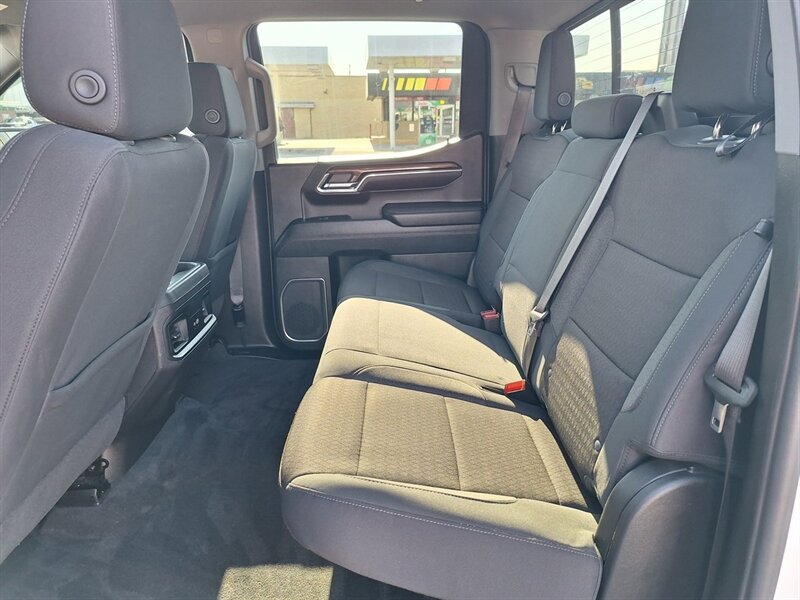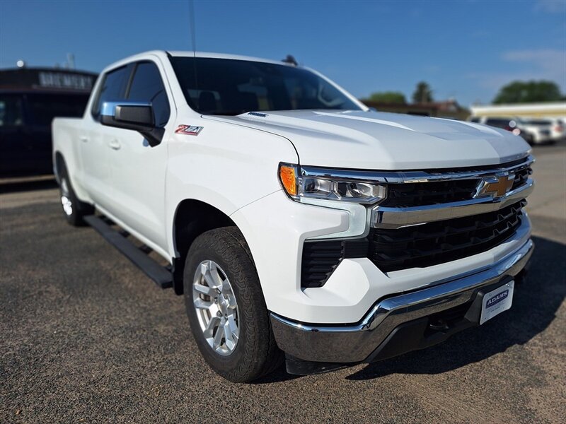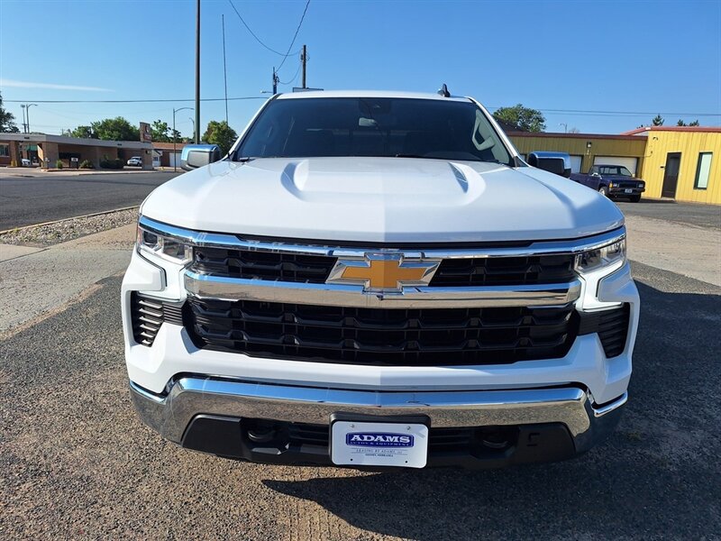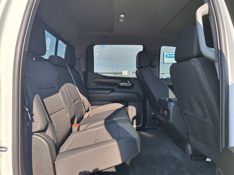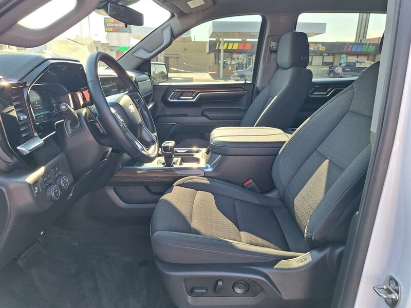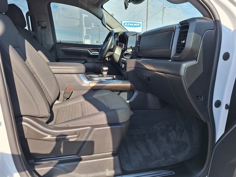 Meet the 2024 Chevrolet Silverado 1500 LT — Summit White on the outside, Gideon/Very Dark Atmosphere cloth on the inside, and powered by the Duramax 3.0L Turbo Diesel I6 that somehow manages to be both a gentle commuter and a torque monster: 305 horsepower and a hearty 495 lb-ft of torque. Translation: it hauls, it tows, it passes slow drivers like they’re standing still, and it does it while sipping diesel at a very reasonable pace (23 MPG city / 27 MPG highway).