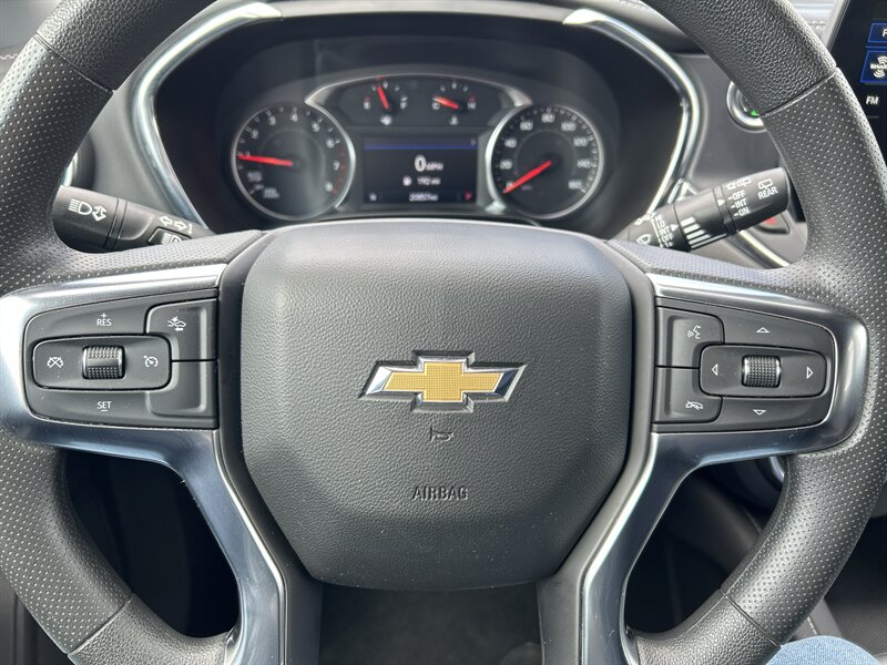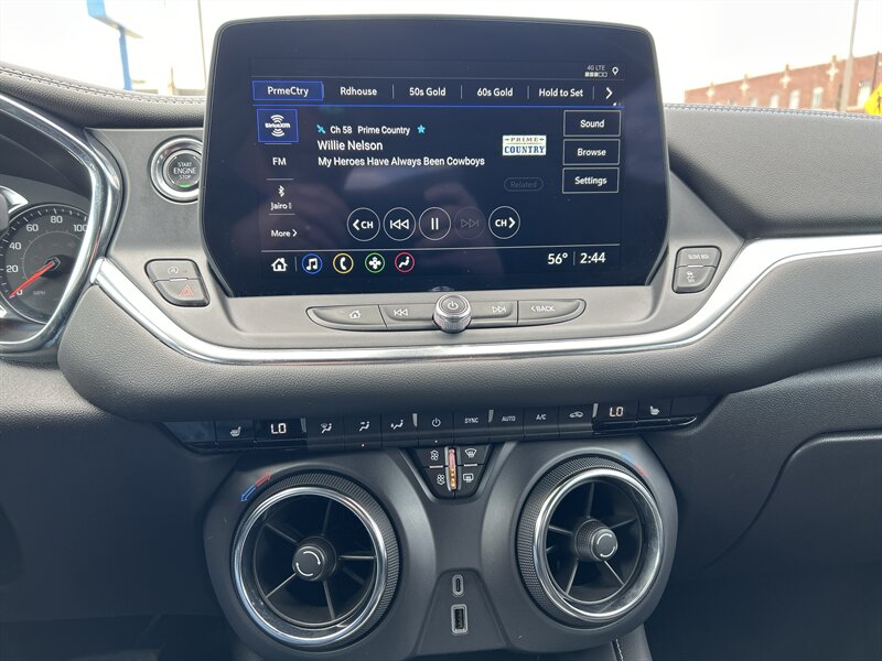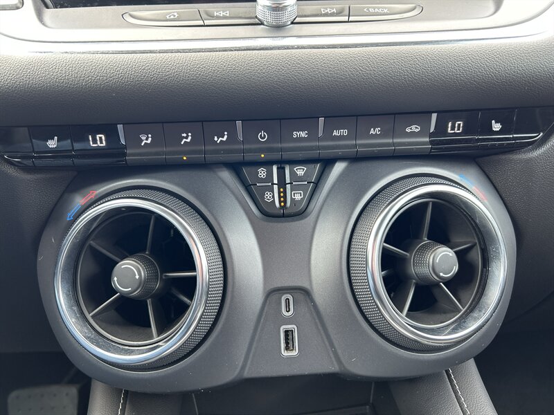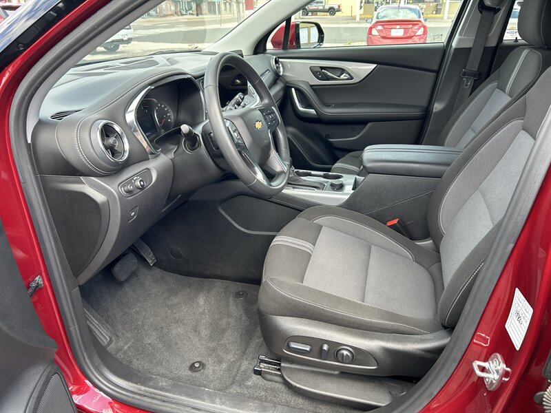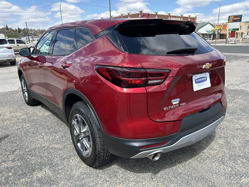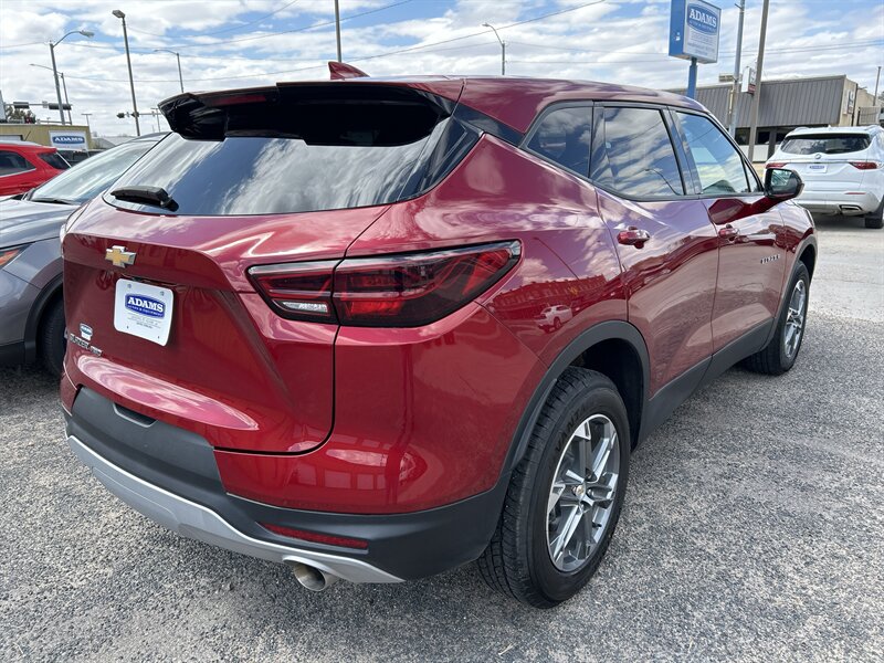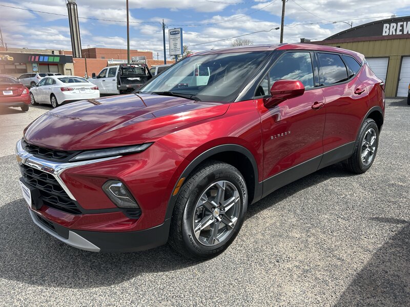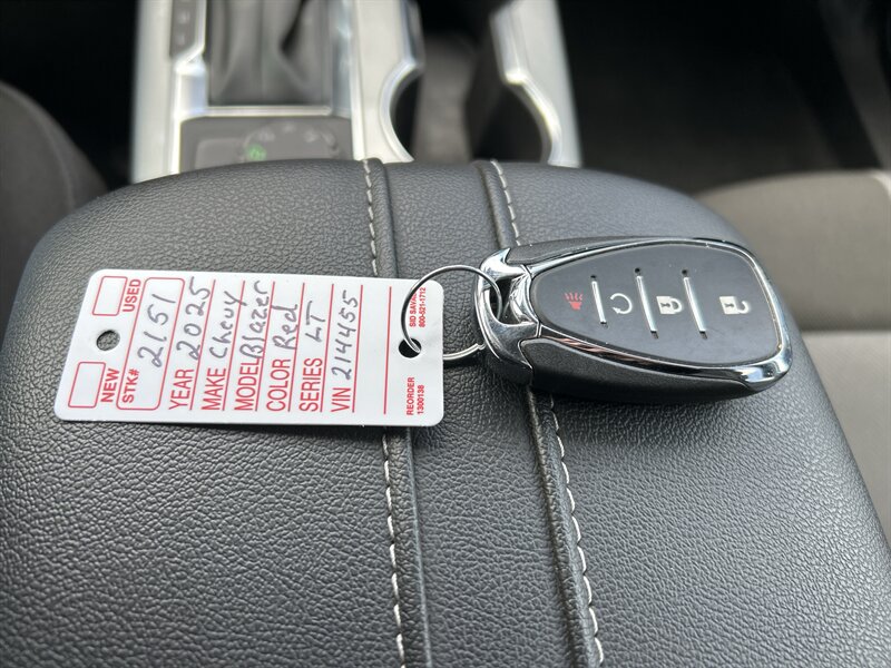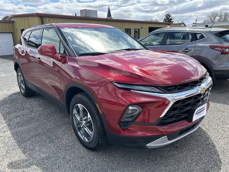 2025 Chevrolet Blazer LT AWD finished in Radiant Red Tintcoat with a Jet Black/Medium Gray interior — excellent overall condition. Powered by a 2.0L Turbo I4 (228 hp / 258 ft-lb) paired with an automatic transmission and all-wheel drive, it delivers an EPA estimate of 22 MPG city and 27 MPG highway. Factory equipment includes a Chevrolet infotainment system with touchscreen, Apple CarPlay/Android Auto, Bluetooth and multiple USB ports, dual-zone automatic climate control, power-adjustable driver’s seat and 60/40 split-folding rear seat, LED exterior lighting and alloy wheels. Safety systems standard from the factory include forward collision alert with automatic emergency braking, lane keep assist with lane departure warning, automatic high beams, and a rear vision camera.